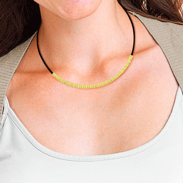 Baño: oro amarillo Acabado: liso y satinado Material: mostacilla Color: amarillo Medida: 45 cm/0,4